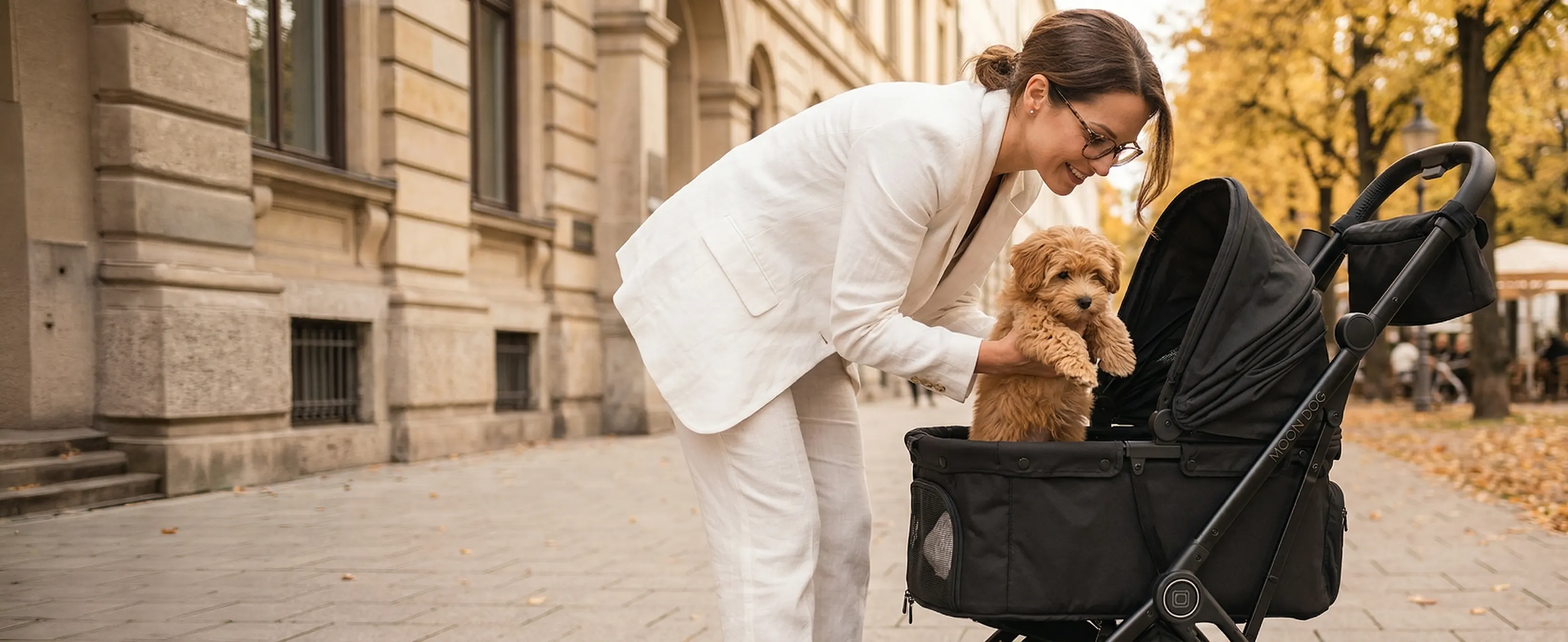 Für kleinere Hunde bis 15 kg. Wendig, kompakt und perfekt für den Stadtalltag – mit bewährter MOON-Qualität.